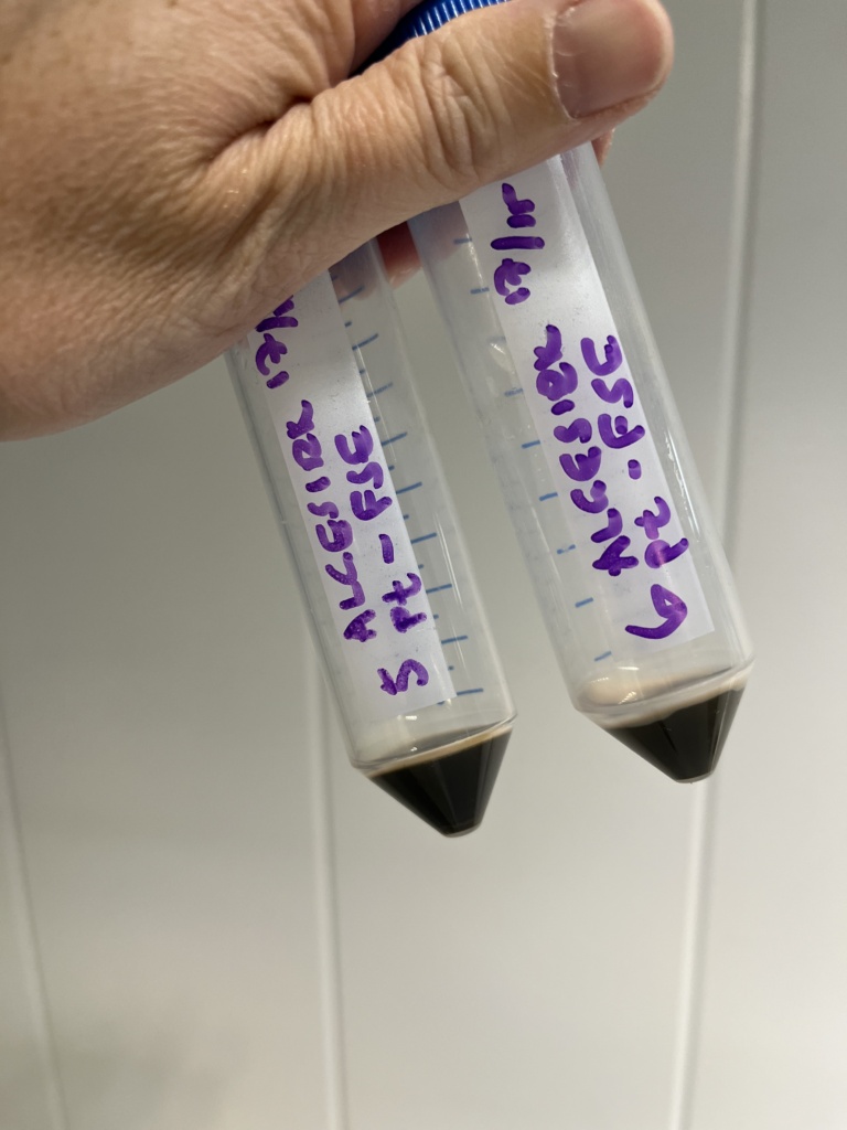 I ALGESIRK undersøkte vi først avløpsvannet til oppdrettsanlegget for å se om det kunne være nok næringsstoffer til mikroalgedyrking allerede her, men dette vannet var svært næringsfattig.